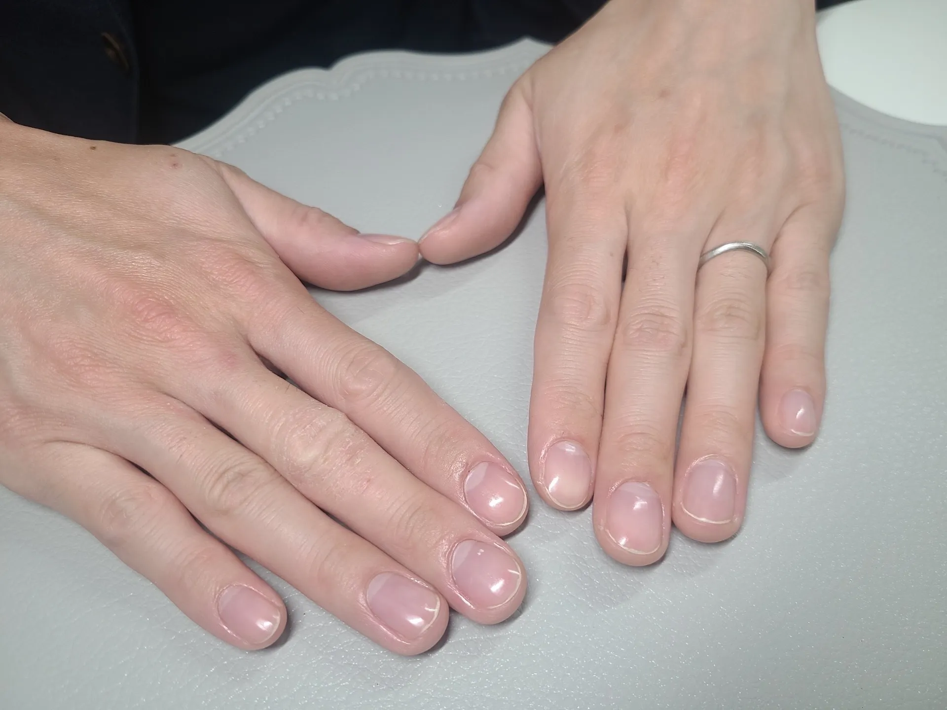 名古屋で爪磨きをしたい60代の方ご覧ください♪「メンズネイルサロンアッシュ」 いつも長さはご自身でカットされて来られるのでかたは整える程度と艶を出してます♪パラフィンパックもされるので血色もよくなり健康的に見えます。とっても素敵です!