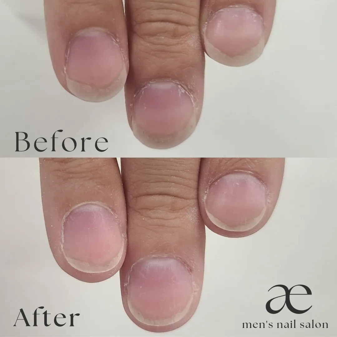 名古屋駅降りてすぐにあるメンズネイルサロンはアッシュへ♪ ENAMIです ツヤ最大限抑えめなケアをしました♪ 爪磨きにまだ抵抗あるかも?の方はまずは甘皮処理をしてケアをツヤは控えめにしていただき様子を見てください^^ 甘皮の部分が乾燥していたのでしっかり除…