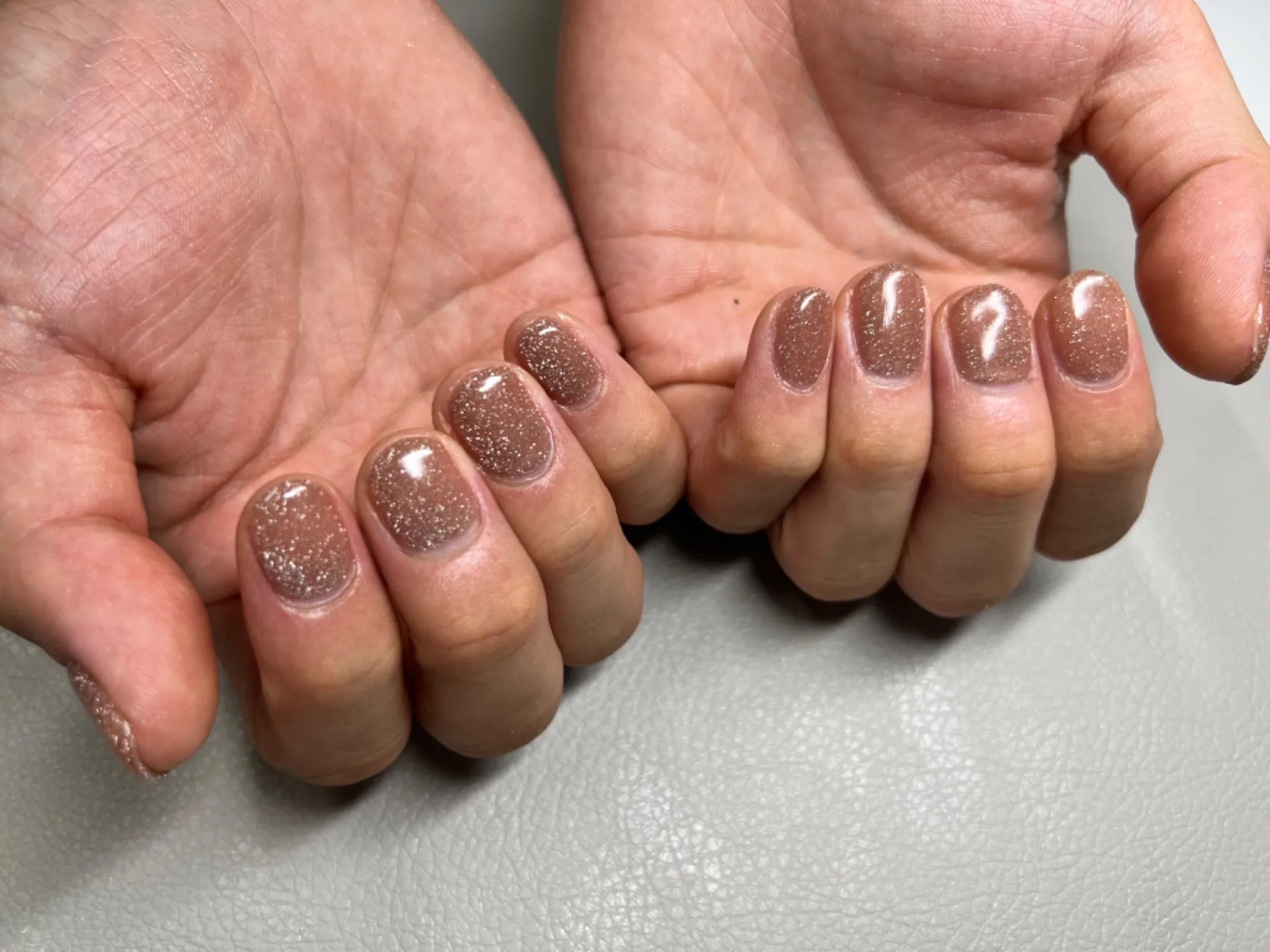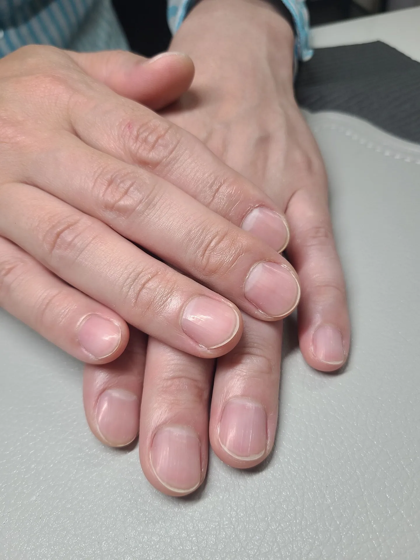 名古屋で唯一のメンズ専門ネイルサロン『men's nail salon æ』 ジェルネイルリペアのお客様!今回はラメをご希望だったので、手に馴染むカラーでラメ入りのものをご提案させていただきました!今までで一番好き!を頂きましたー!!!
